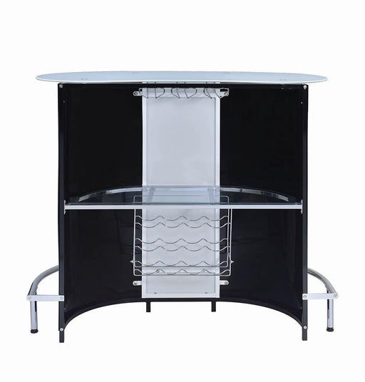 G100654 Contemporary Black and Chrome Bar Unit with Frosted Glass Top